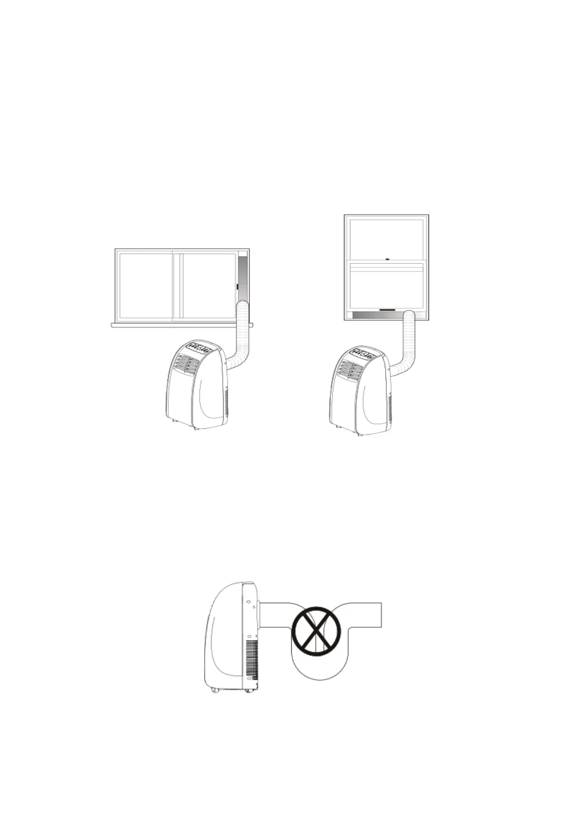 l Es ist wichtig, dass der Abluftkanal sanft gebogen bleibt. Eine fehlerhafte