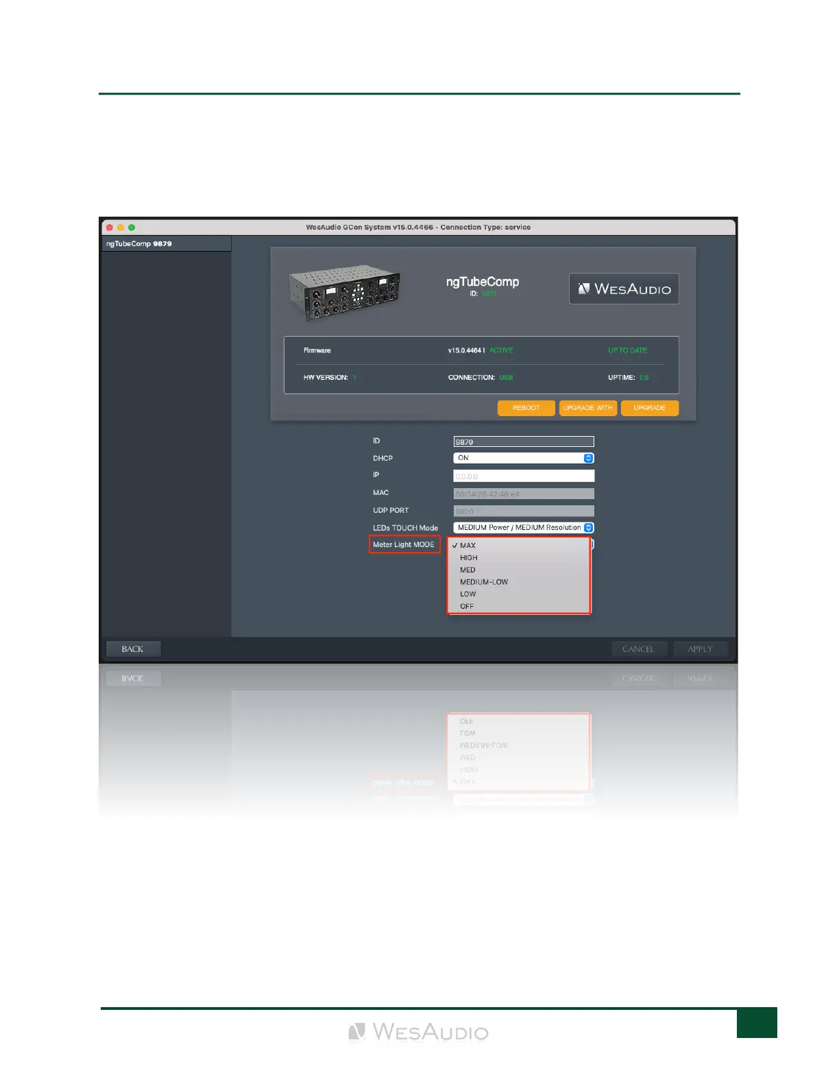 lighting conditions. The intensity of the meter’s backlight can be adjusted via the GCon Manager application.