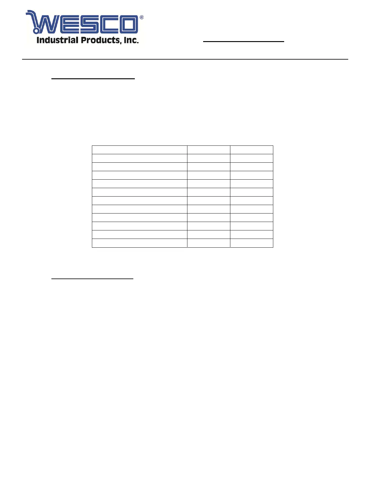Thank you for purchasing a Wesco Manual Non-Telescoping High Lift Truck. This pallet truck is