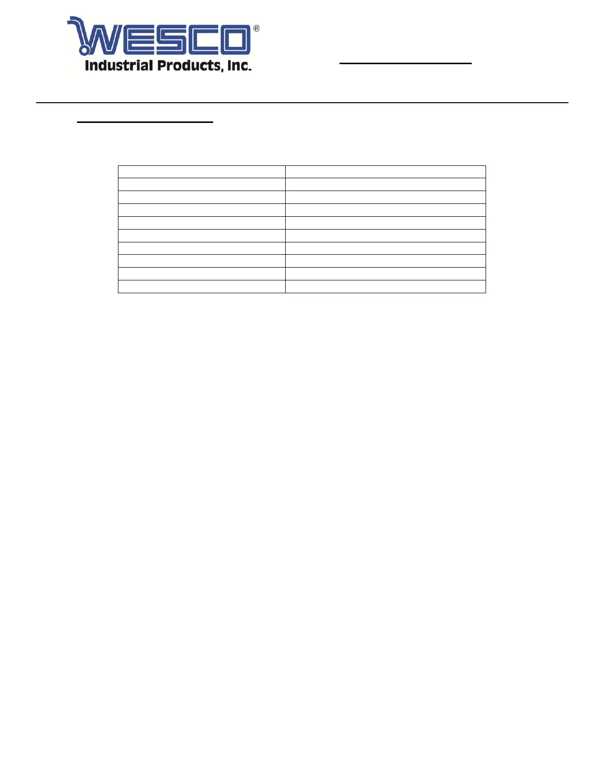 ©Copyright 2016 WESCO Industrial Products, Inc. Specifications subject to change. Not responsible for errors or omissions. 159290A