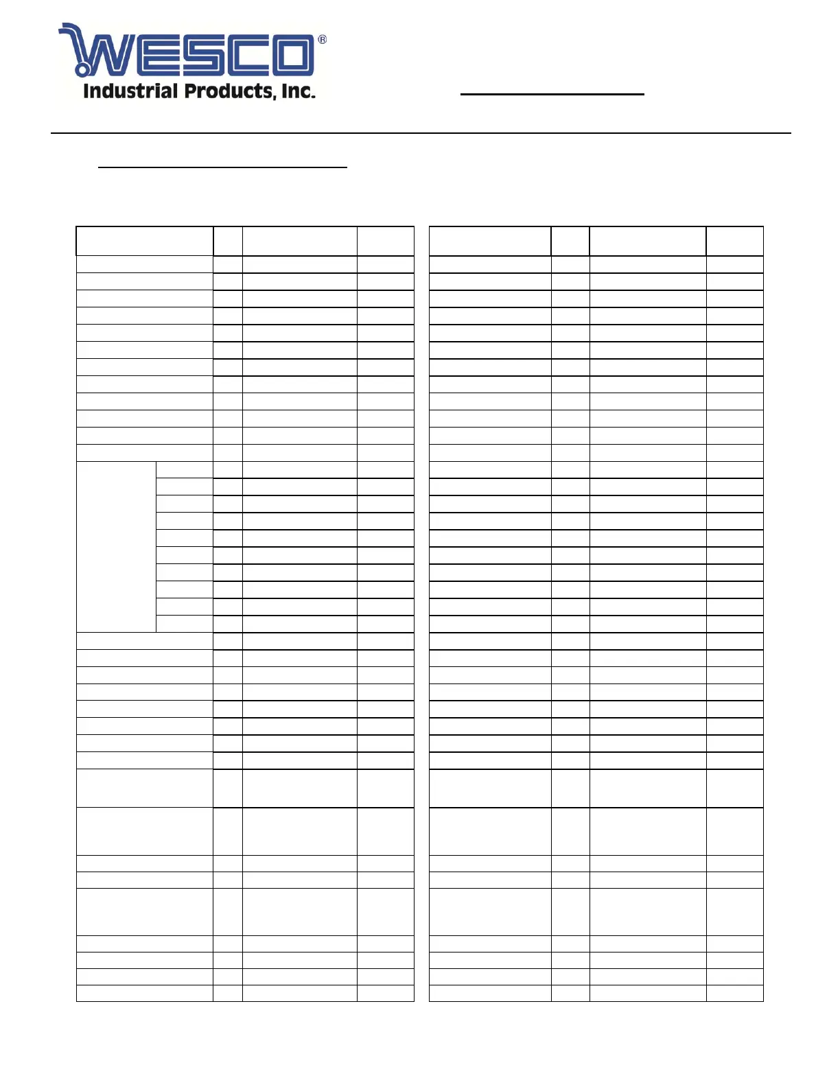 © Copyright 2015 WESCO Industrial Products Inc. Specifications subject to change. Not responsible for errors or omissions