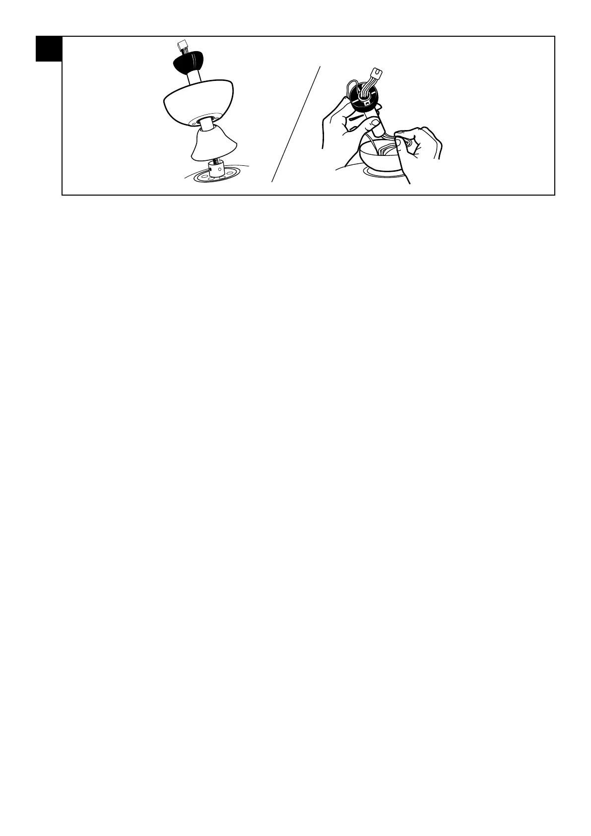 Wprowadź pręt poprzez czaszę i pokrywę złączki. Ostrożnie wprowadź przewody prowadzące i wtyczkę poprzez pręt i złożenie kulkowe.