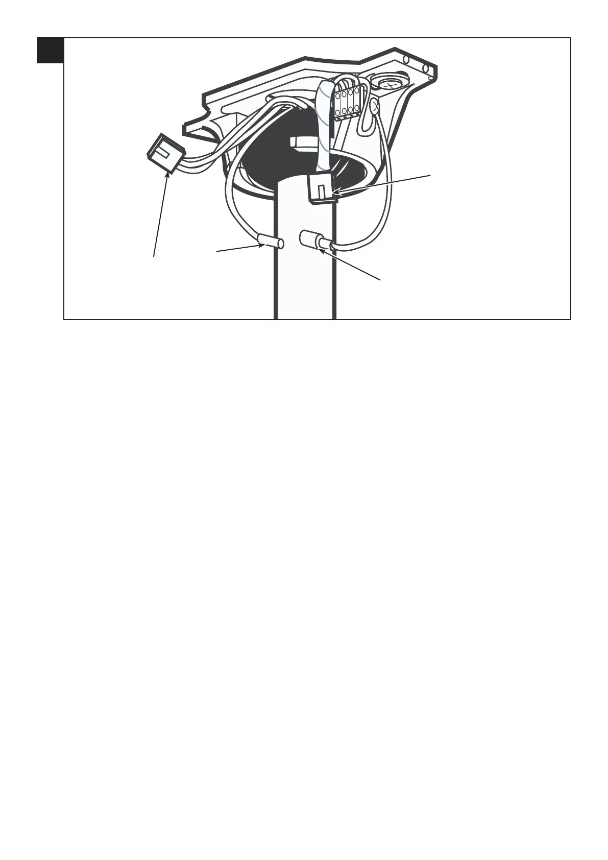 Mens braketten holder vifteenheten, tilkobles pluggforbindelsen (1) fra viften til koblingsklemmen. Koble jordledningen (2) fra senkestangen til