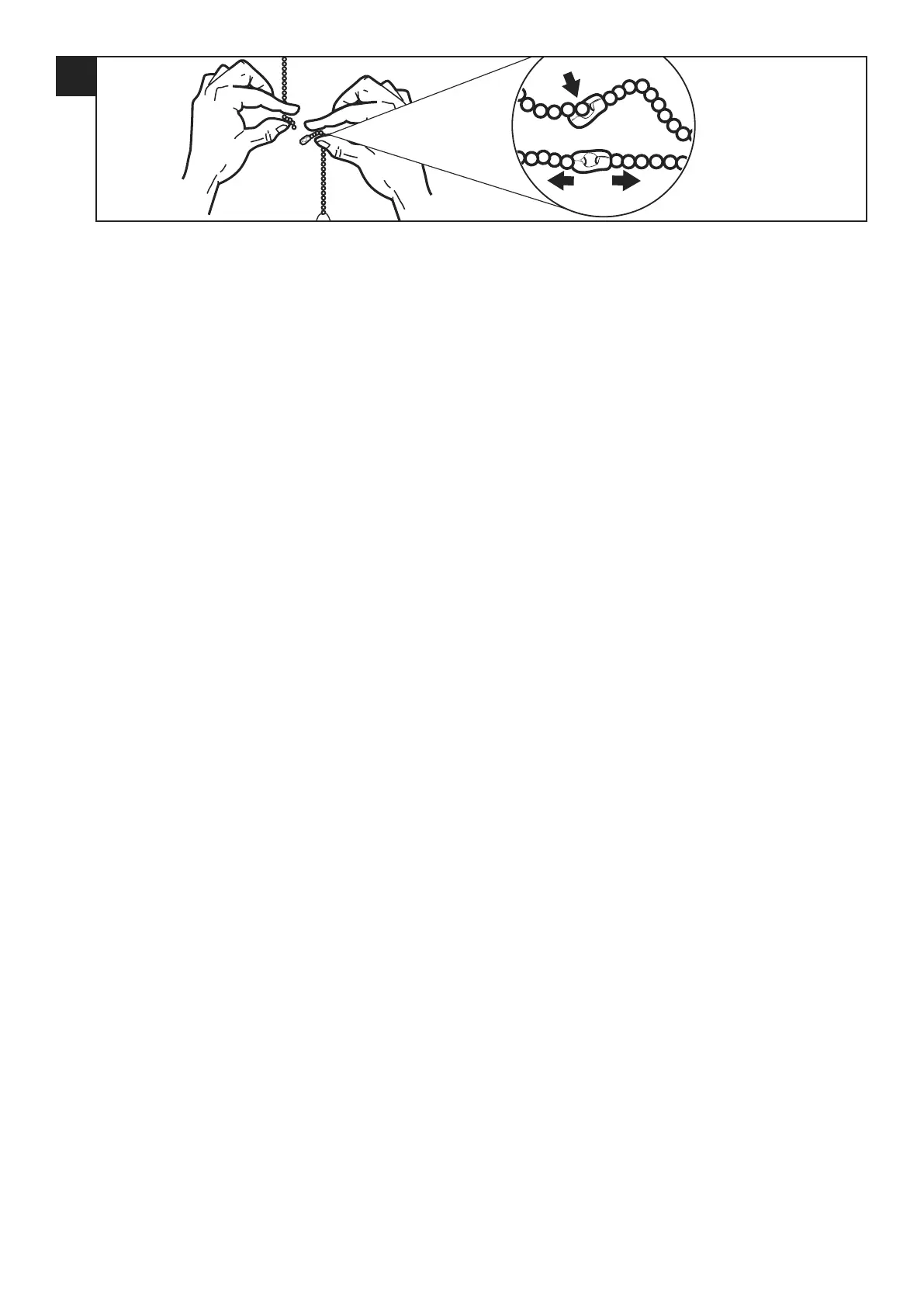 края на дългата верижка за дърпане в брънките на верижките. Проверете дали верижките са добре закрепени като леко дръпнете двете верижки за