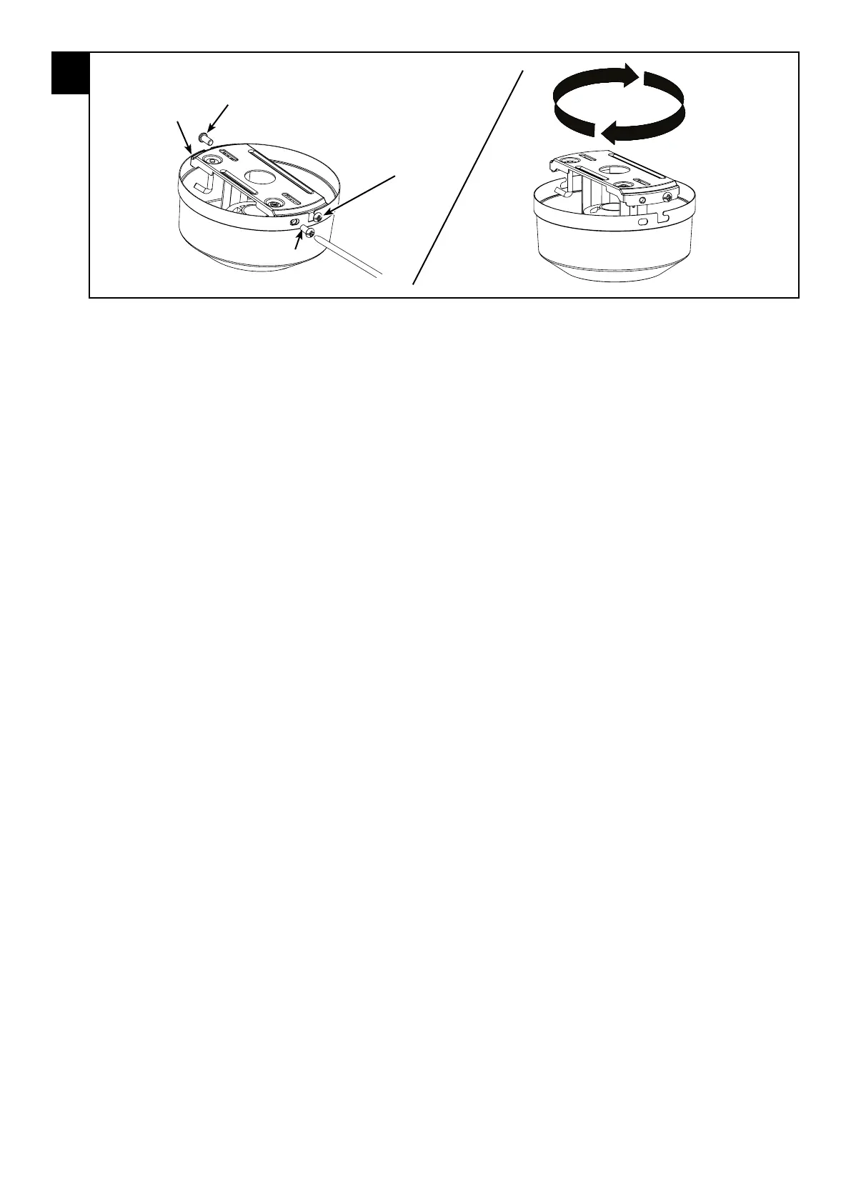 Togliere le viti dai due fori accoppiati (1) della calotta. Allentare (non rimuovere) le viti negli intagli accoppiati (2) sulla calotta. Ruotare la staffa e toglierla dalla