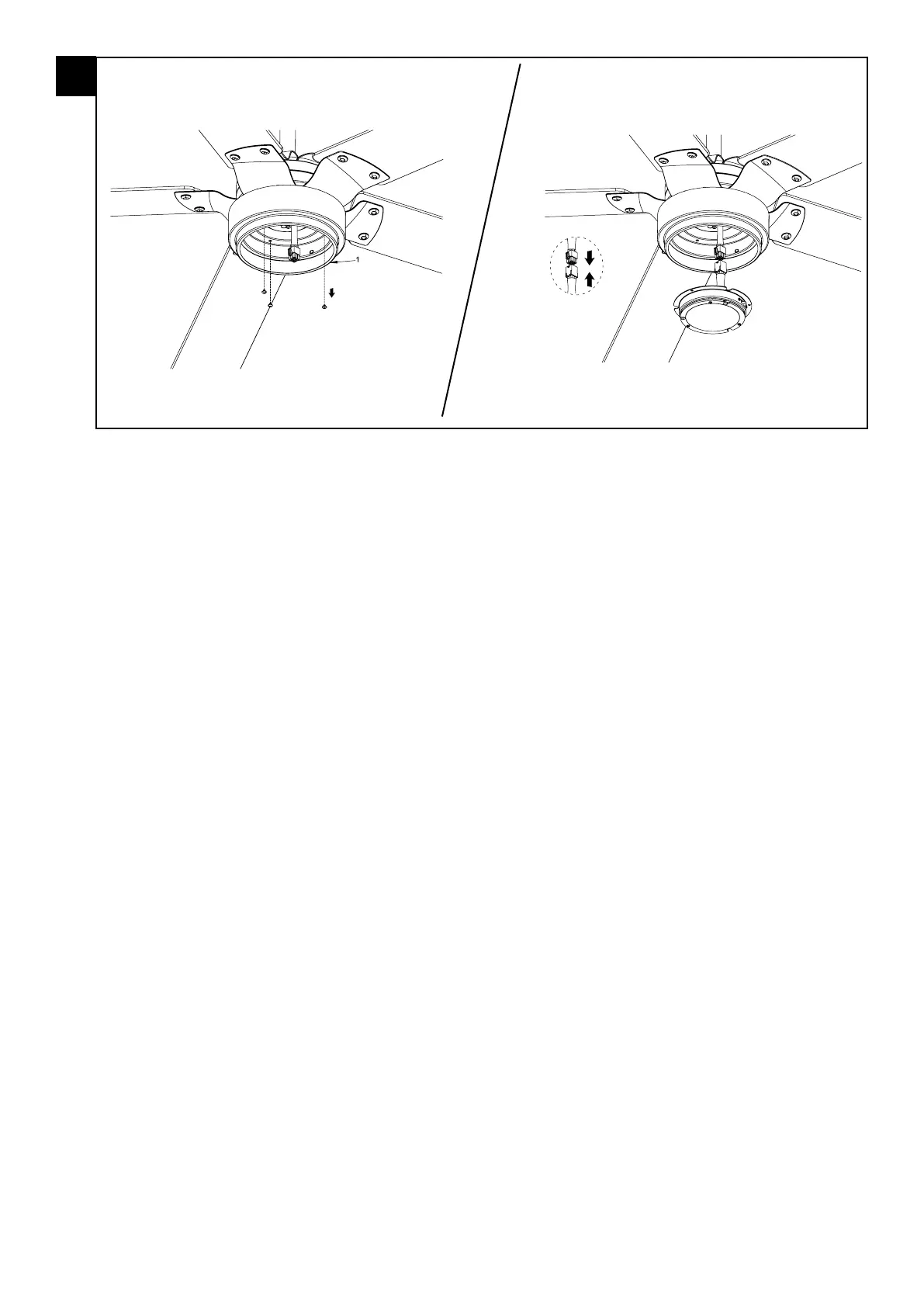 Remova os 3 parafusos na sombra metálica decorativa (1), mantê-los para uso futuro. Encontre os conectores do kit de iluminação e do motor e