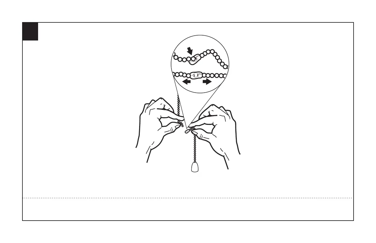 Sujeta las cadenillas largas de tiro con las piezas finales correspondientes, a las cadenillas del ventilador, introduciendo el extremo de la cadenilla larga en la pieza