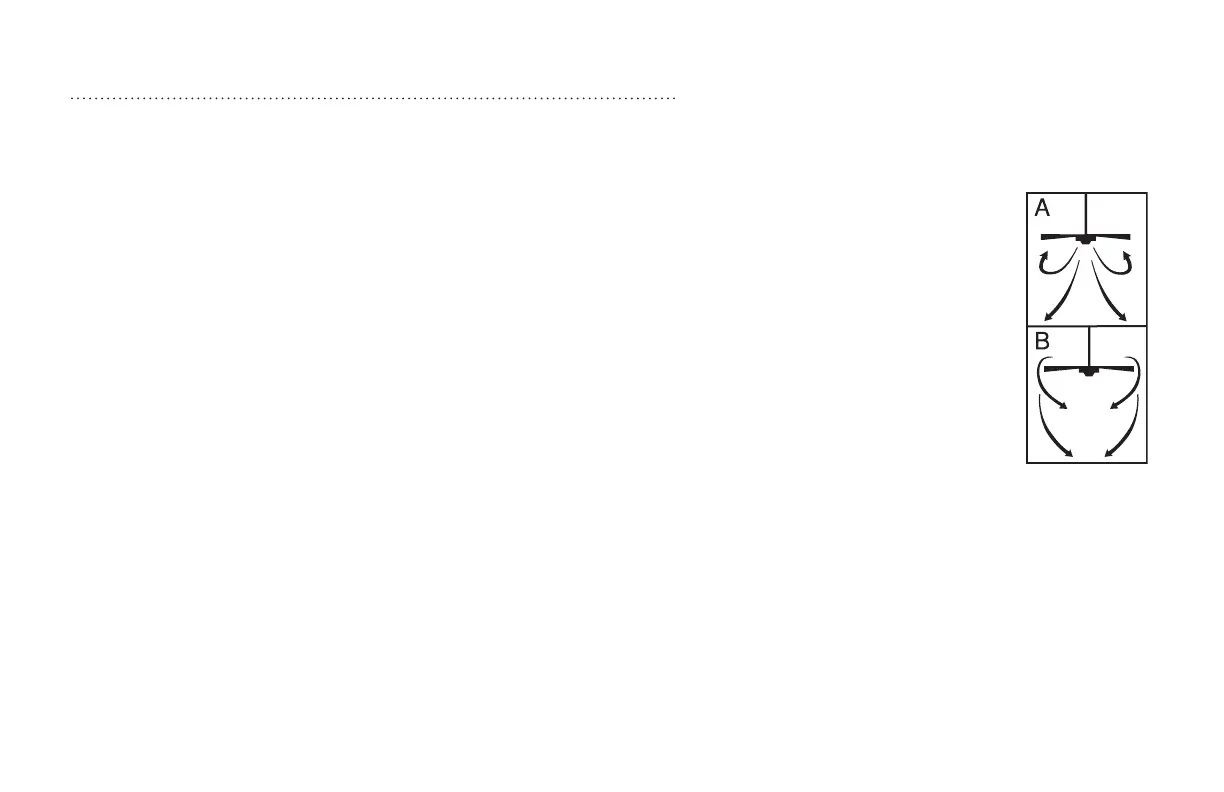 Clima cálido/posición hacia abajo - (Adelante) El ventilador gira en sentido contrahorario. Una corriente de aire descendente crea un efecto