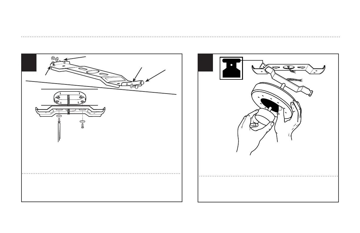 Install mounting bracket to outlet box in ceiling using the screws and washers