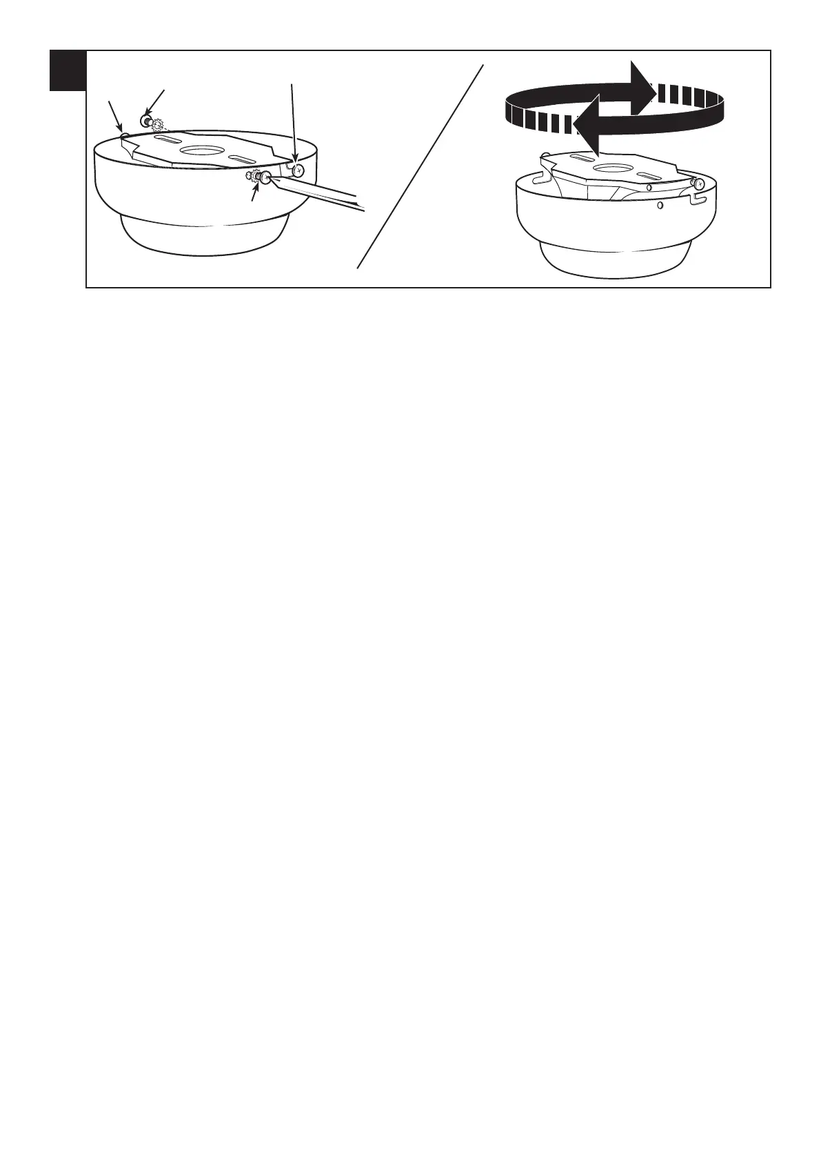Togliere le viti e le rosette a stella dai due fori accoppiati (1) della calotta. Allentare (non rimuovere) le viti negli intagli accoppiati (2) sulla calotta. Ruotare la
