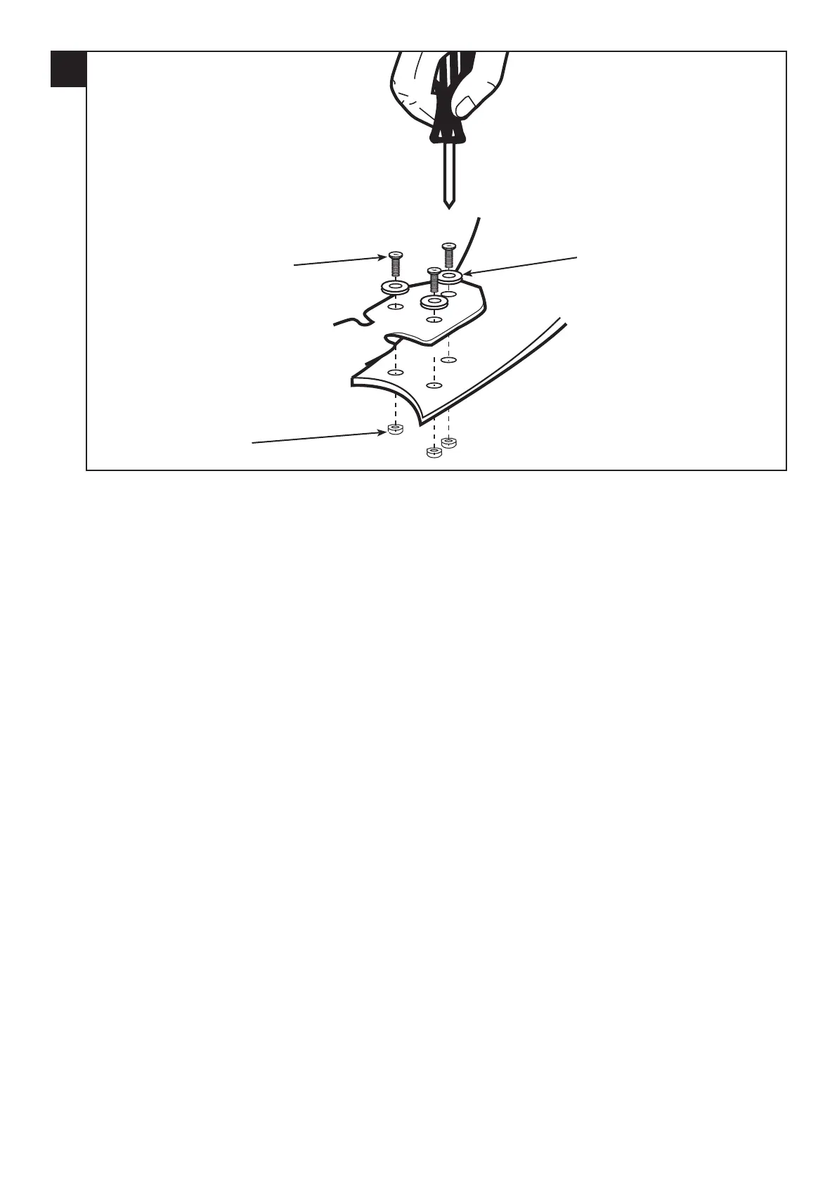 Szerelje a lapátokra a lapáttartókat az (1) lapáttartó csavarokkal, (2) szövet alátétekkel, és (3) díszített kivitelű anyákkal.