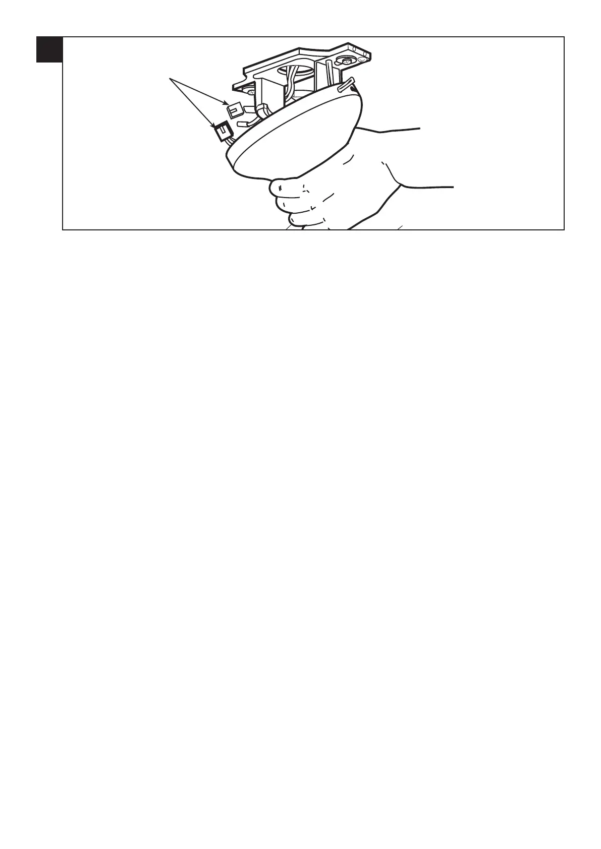 Vid infälld montering, lyft fläkten och placera den på haken från monteringshållaren i ett stängt hål på armaturkåpan. Detta gör det möjligt att använda