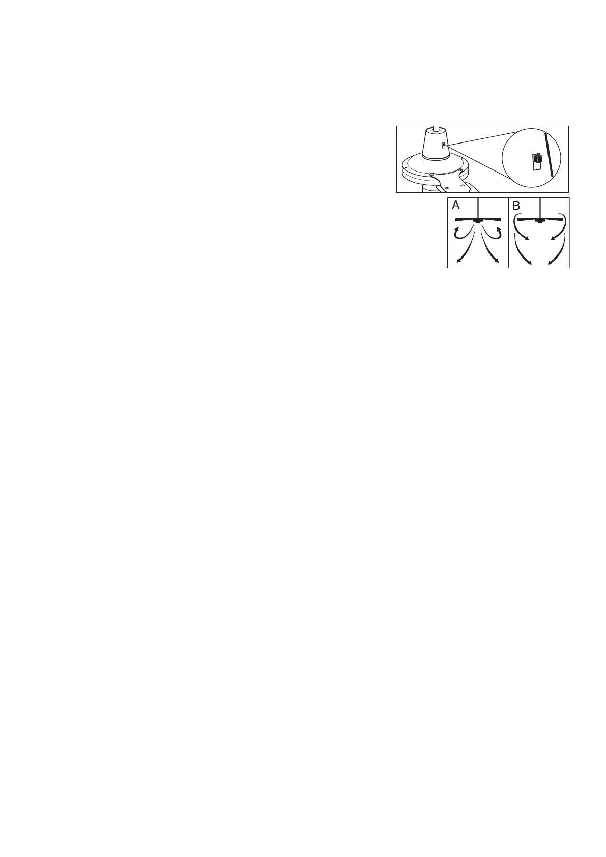Um die Drehrichtung der Flügelblätter zu ändern, den Umkehrschalter (er befindet sich oben am Motorgehäuse)