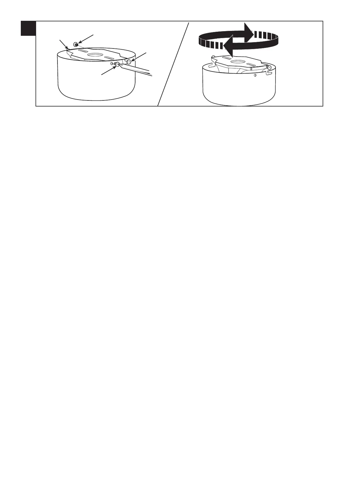 Αφαιρέστε τις βίδες από τις δύο αντίστοιχες οπές (1) στο θόλο. Χαλαρώστε (μην αφαιρέσετε) τις βίδες στις αντίστοιχες εγκοπές (2) στο θόλο. Περιστρέψτε
