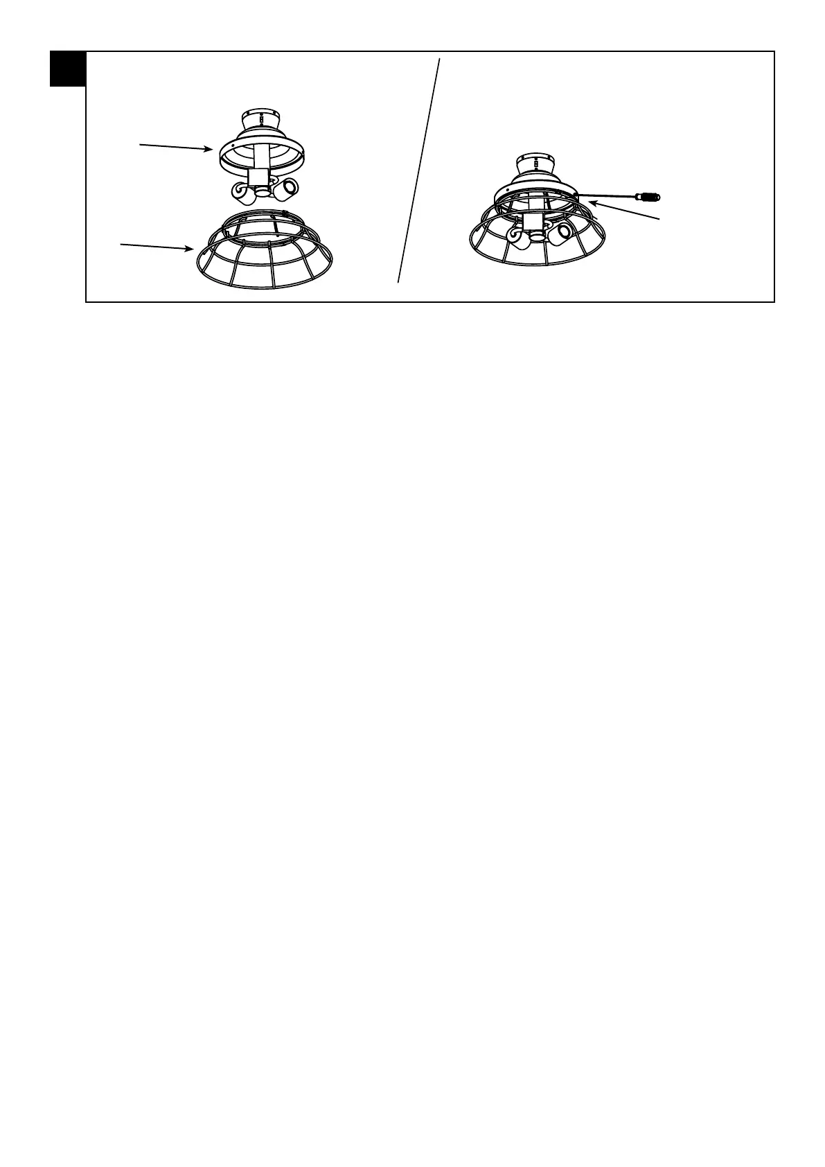 Primontujte horné tienidlo klietky (1) ku krytu svietidla (2) pomocou troch dodaných skrutiek (3).