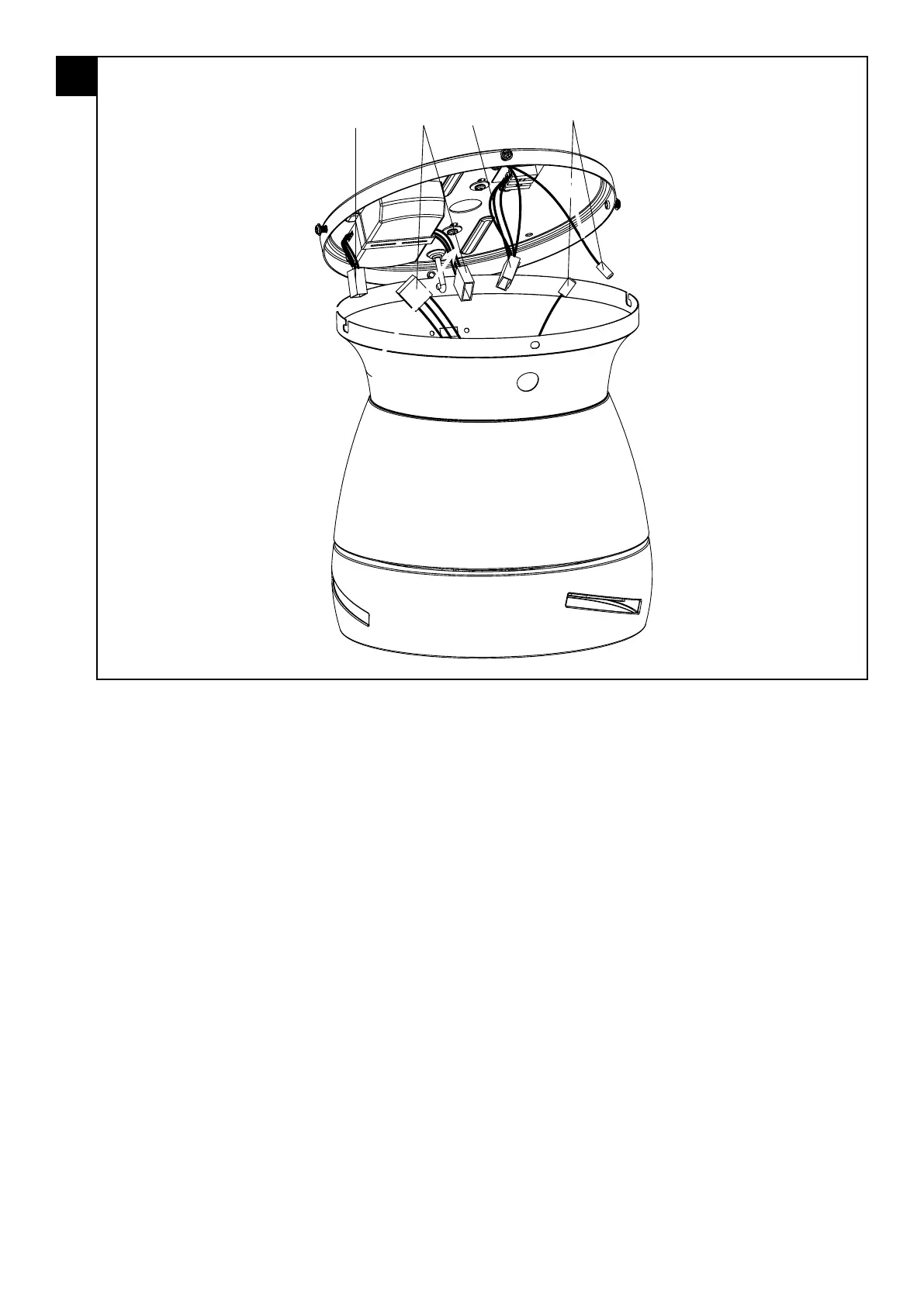Lorsque le ventilateur est suspendu sur le support de montage, branchez le connecteur 4-polaire du support de montage dans la prise 4-polaire