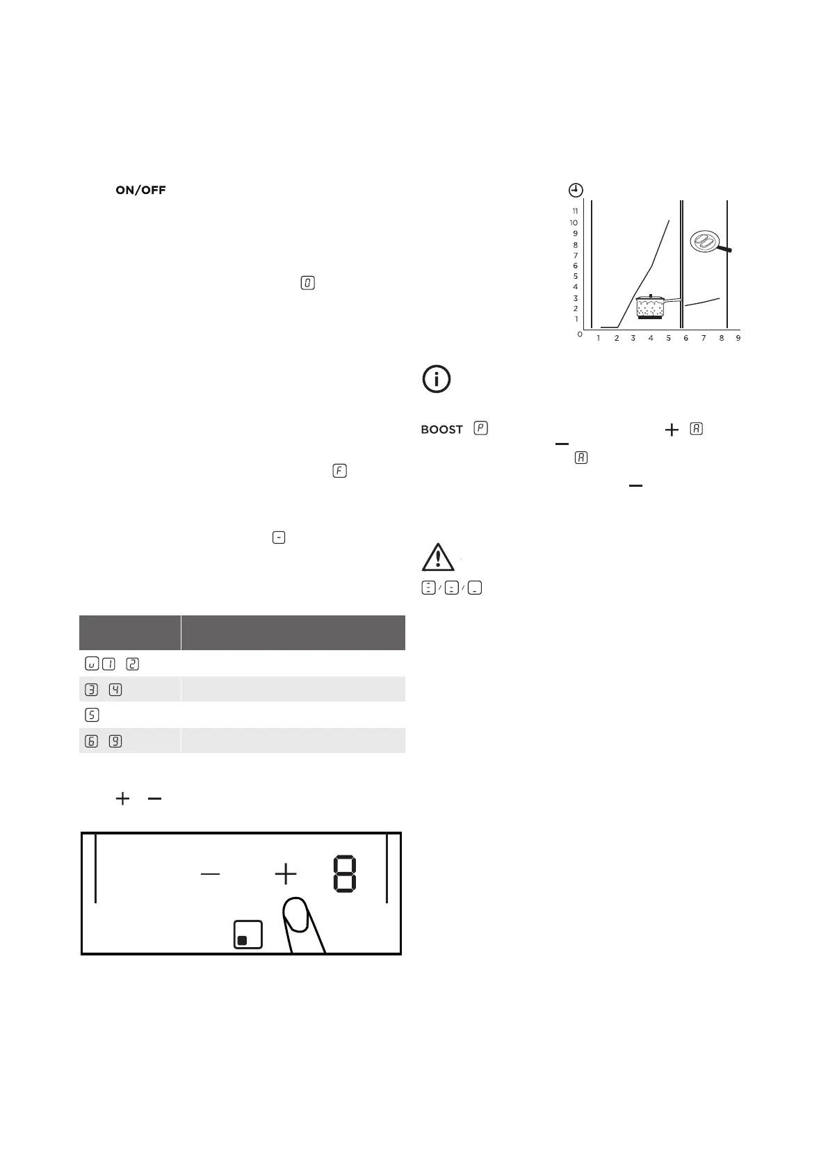 • All cooking zones are deactivated ( ).