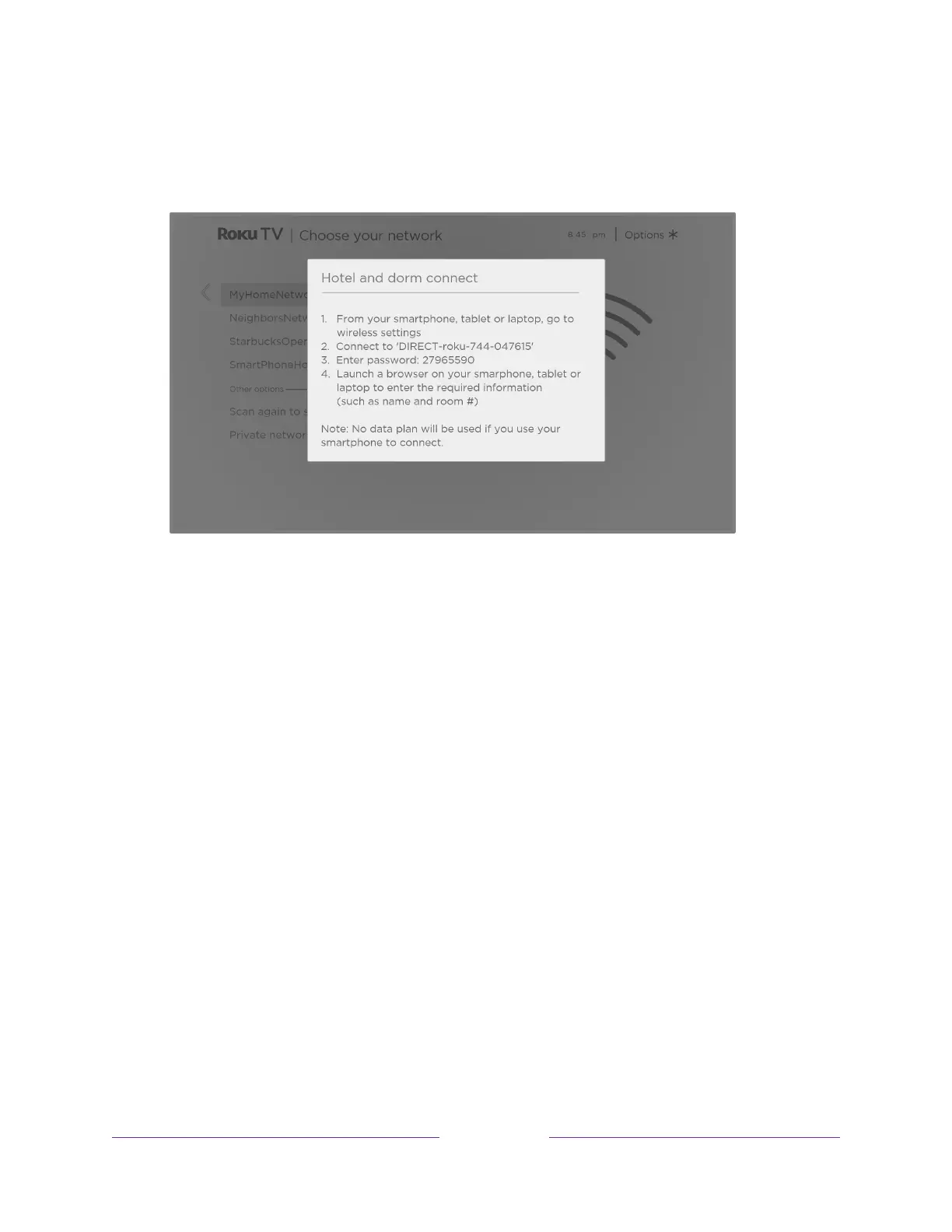 4. Connect to the network named on your TV screen. The actual network name