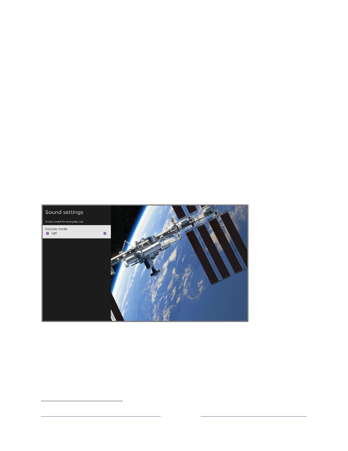 Sound settings menu for models with Volume mode