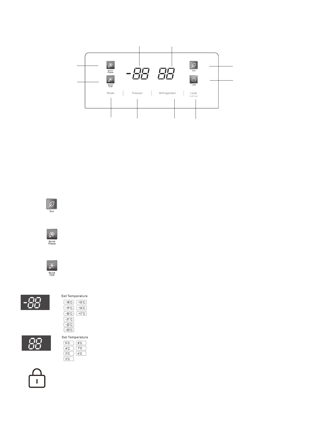 Eco Mode - The refrigerator will run at 4°c while the freezer will operate at -16°c.