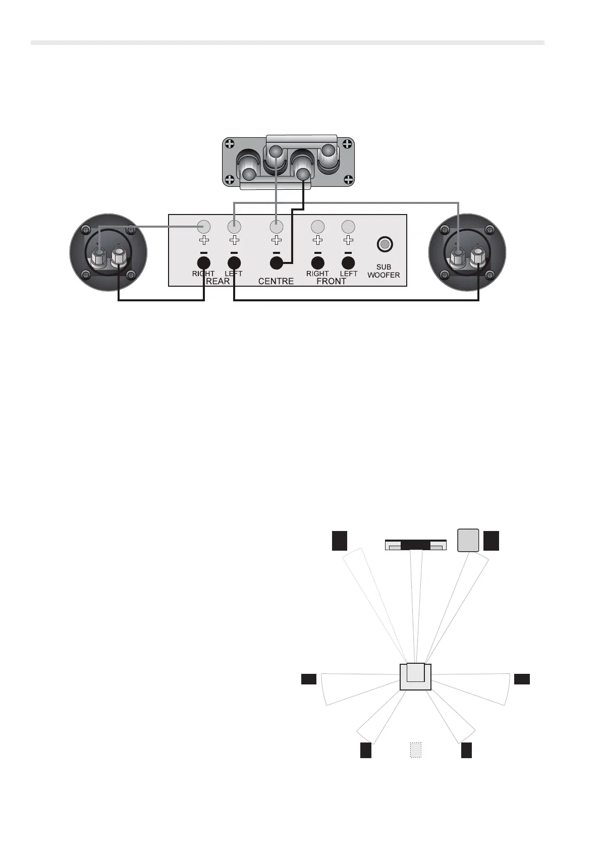 The Centre channel speaker may be connected as shown, or bi-wired.