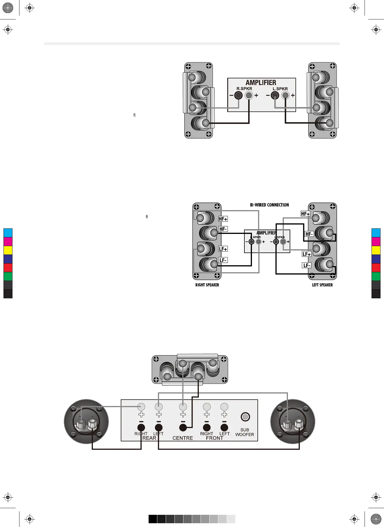 The Centre channel speaker may be connected as shown, or bi-wired.