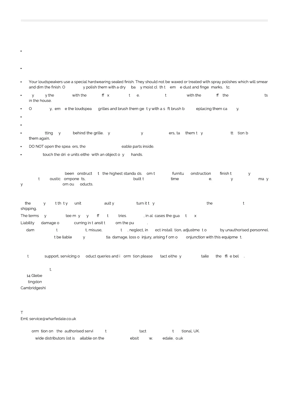 In unlikel even a our develops a f ou should re o our Wharfedale dealer using original packing o ensure safe