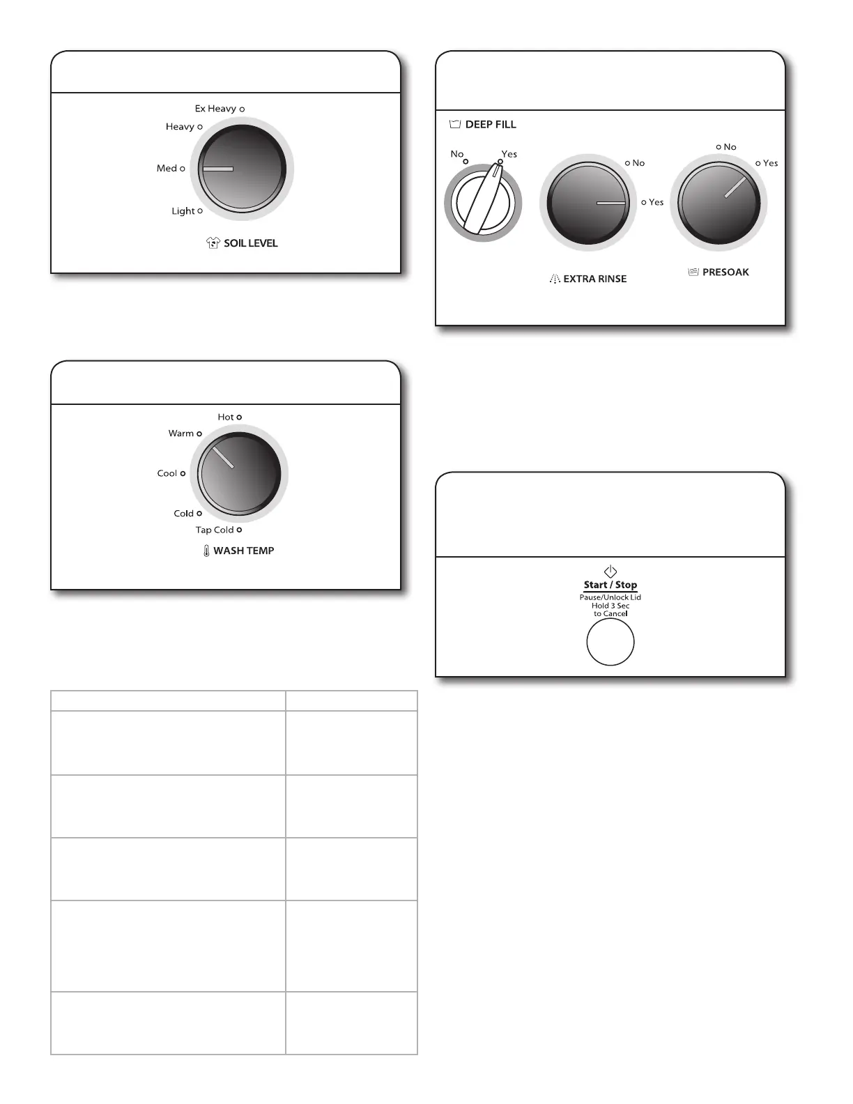 Deep Fill: Set at “Yes” to add extra water to your cycle.