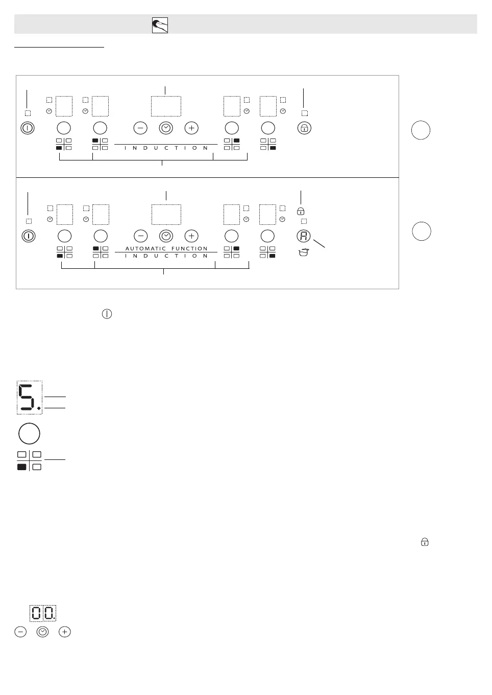 This function locks the controls to prevent accidental switching on of the hob. To activate the control panel lock function, switch on the hob and hold button (or the Automatic