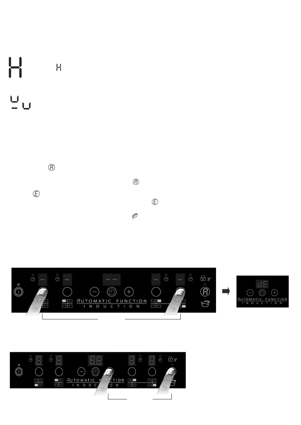 Pour activer le mode démo, appuyez simultanément pendant 5 secondes sur les deux sélecteurs des foyers extérieurs : l’afficheur central indique “dE”. Il est maintenant possible