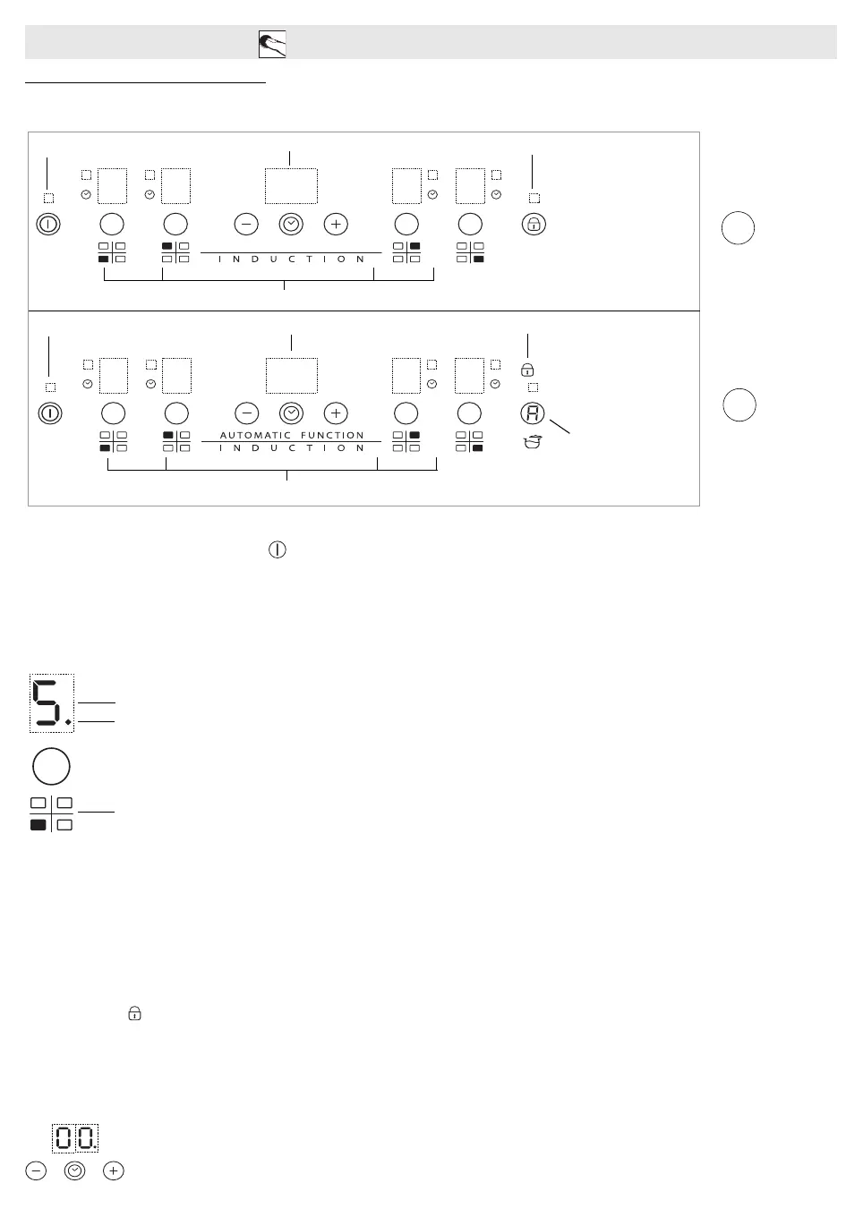 Iedere kookzone heeft diverse vermogensniveaus die ingesteld kunnen worden met de +/-