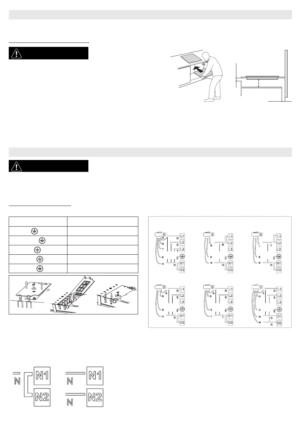 • Ikke installer platetoppen over oppvaskmaskinen eller vaskemaskinen for å unngå at de elektroniske kretsene kommer i kontakt med damp og fuktighet og blir skadet.
