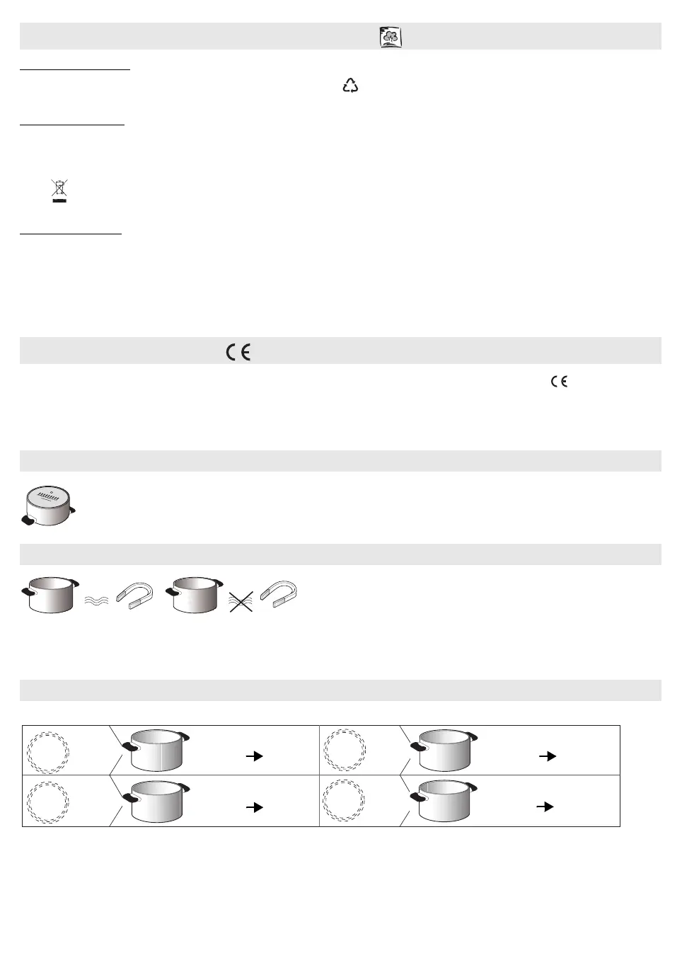 WAŻNE: Jeśli naczynia nie mają prawidłowych rozmiarów, pola grzejne nie włączą się. Stosować wyłącznie naczynia opatrzone napisem „INDUCTION
