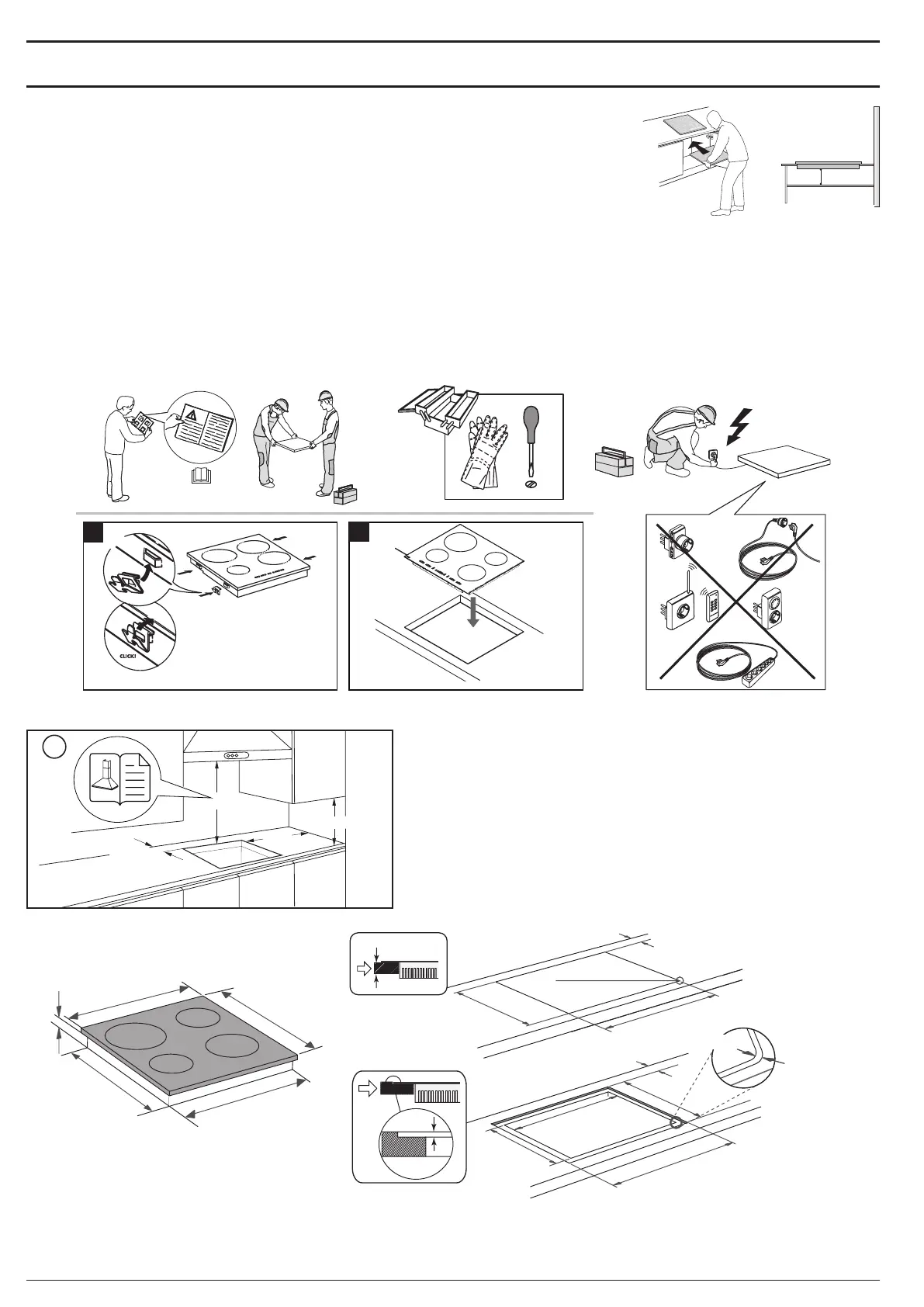 • Pliidiplaat tuleb asetada vähemalt 20 mm sügavusele töötasapinnale.