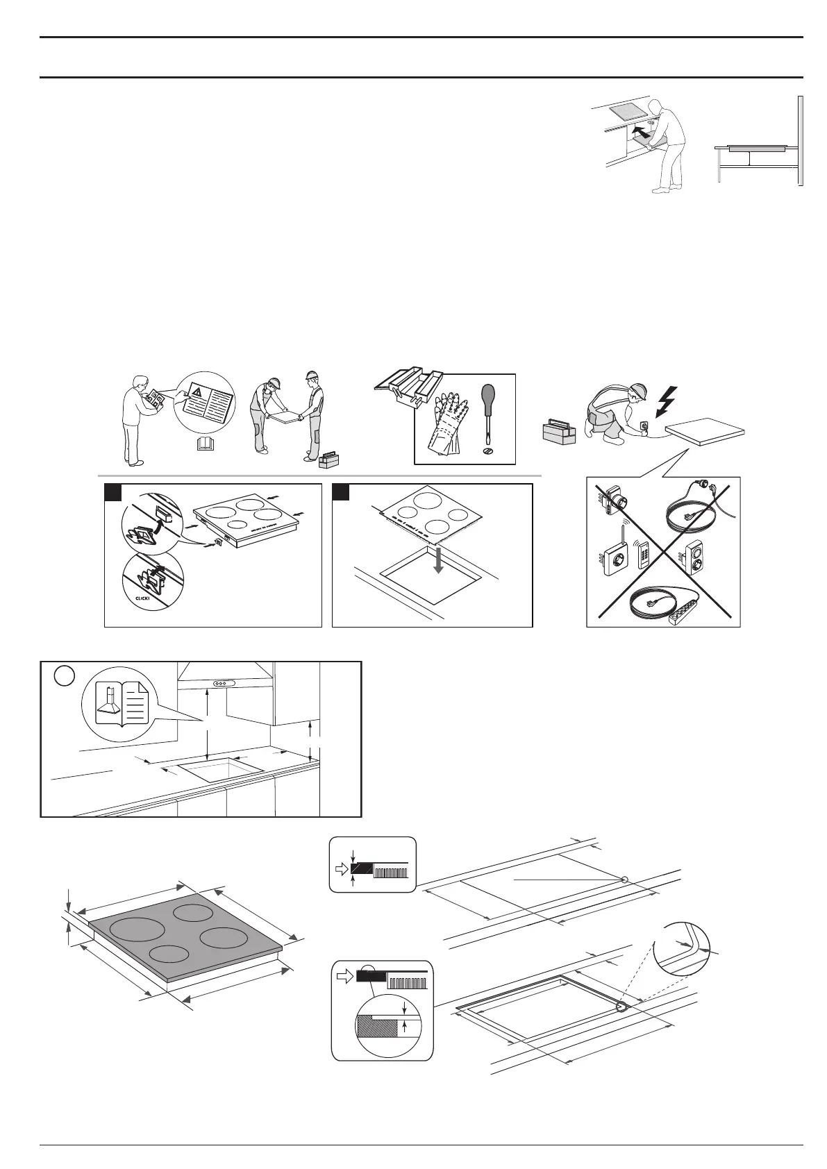 варильної панелі, як зображено на малюнку. Потім засуньте прилад у спеціально вирізану нішу та переконайтеся, що скляну поверхню розміщено