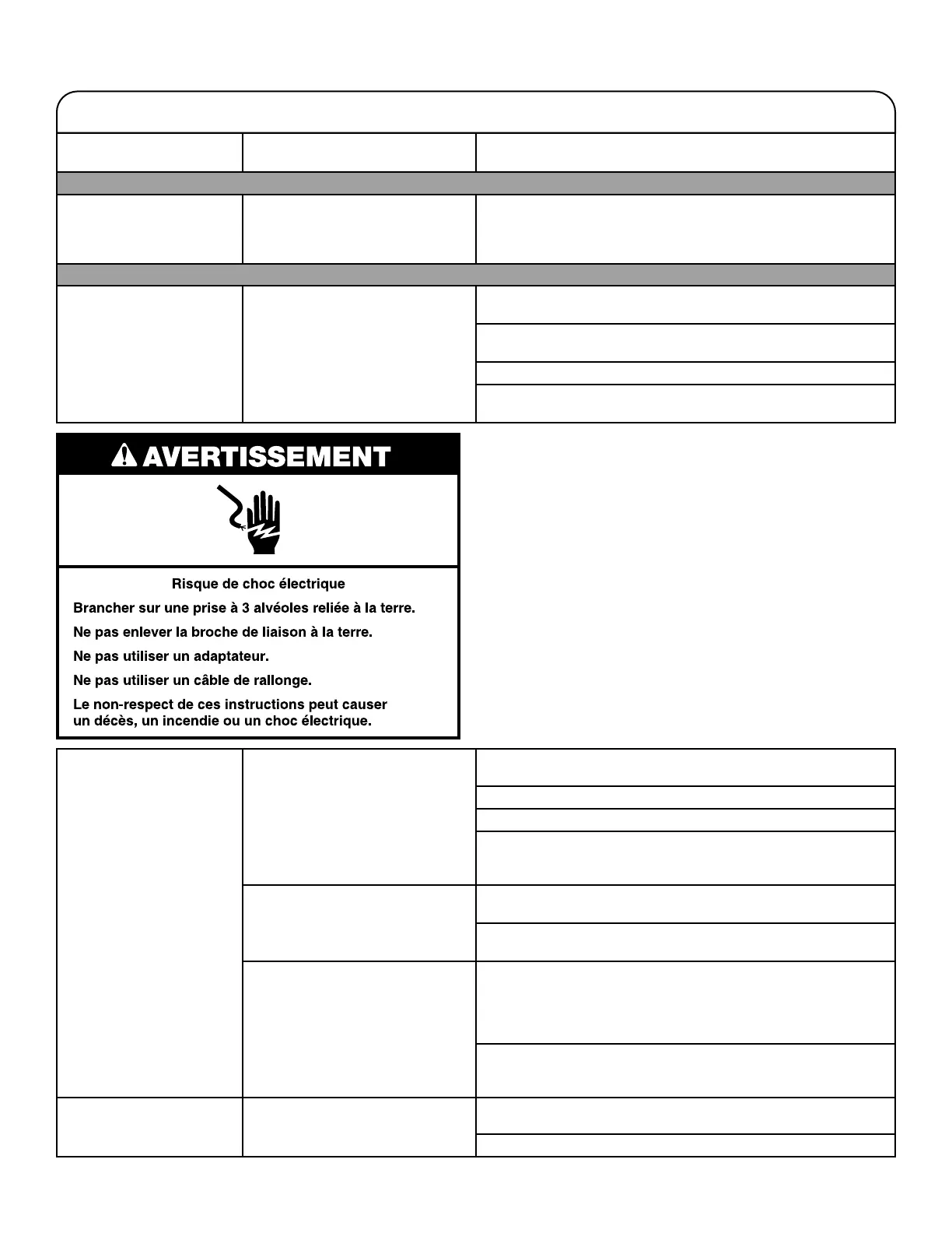REMARQUE : Si le problème persiste, appeler un électricien.