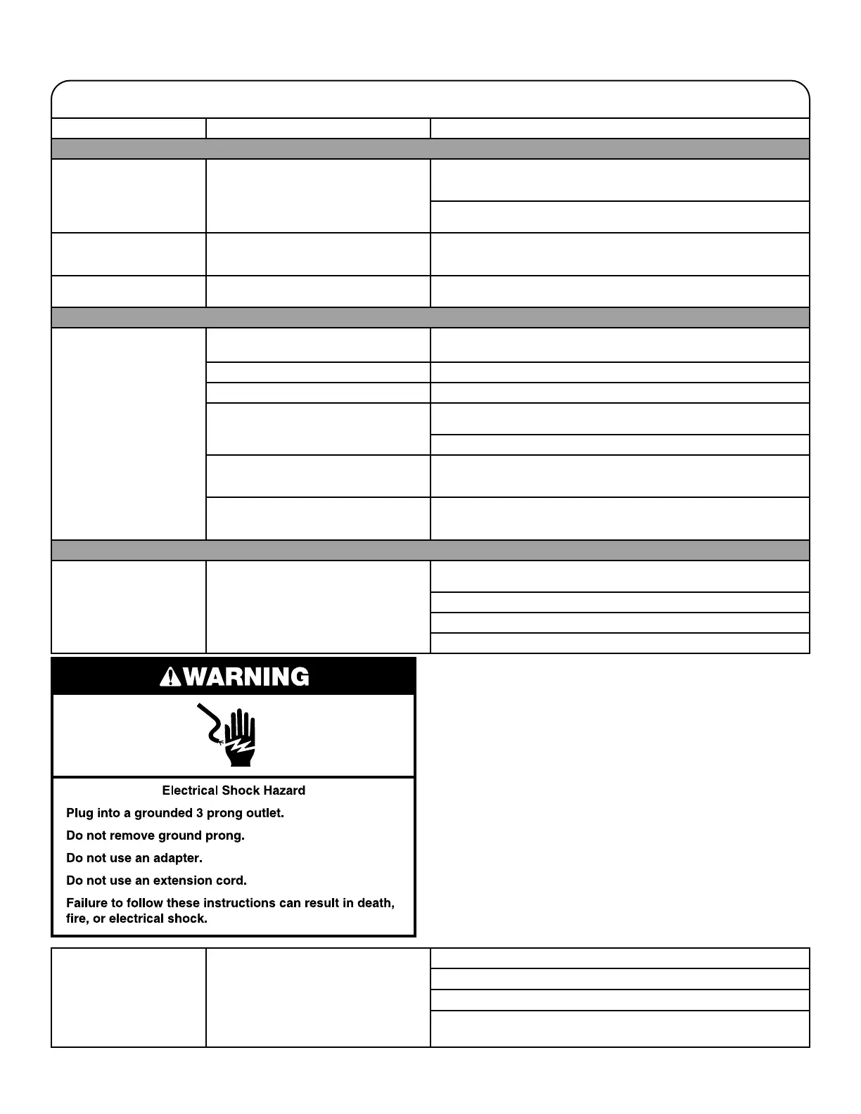 Check proper electrical supply. Plug power cord into a grounded 3 prong outlet.