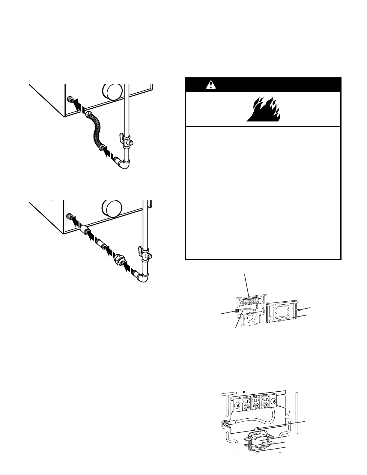 raccordement aligné entre la sécheuse et la canalisation de gaz.