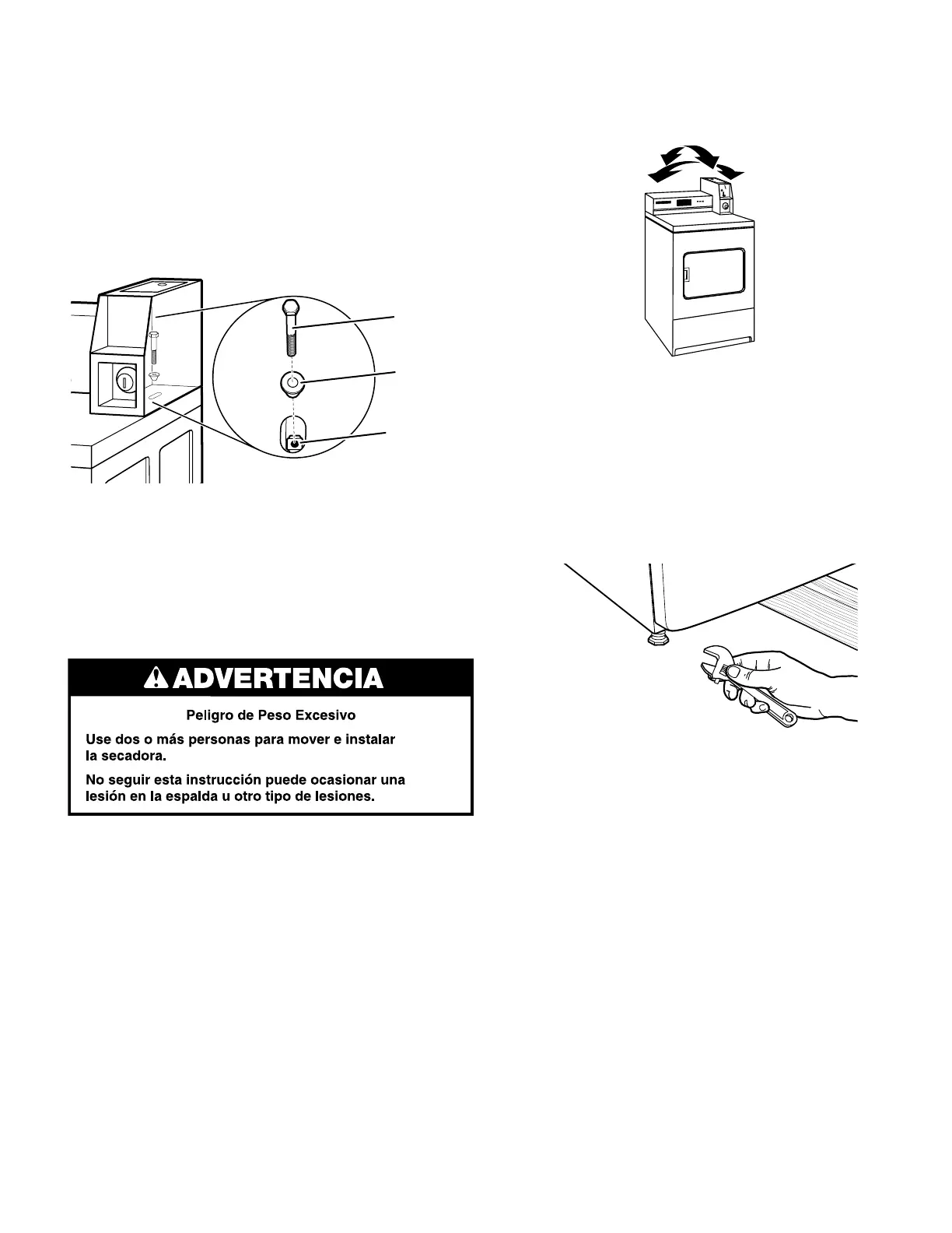 lado. Si la secadora se mueve, vuelva al paso 3 y ajuste las