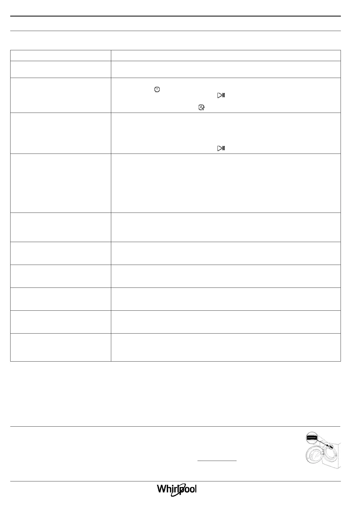• Lavatriçja nuk përparon (programi ka mbetur në vend). Programi do të vazhdojë vetë pasi të