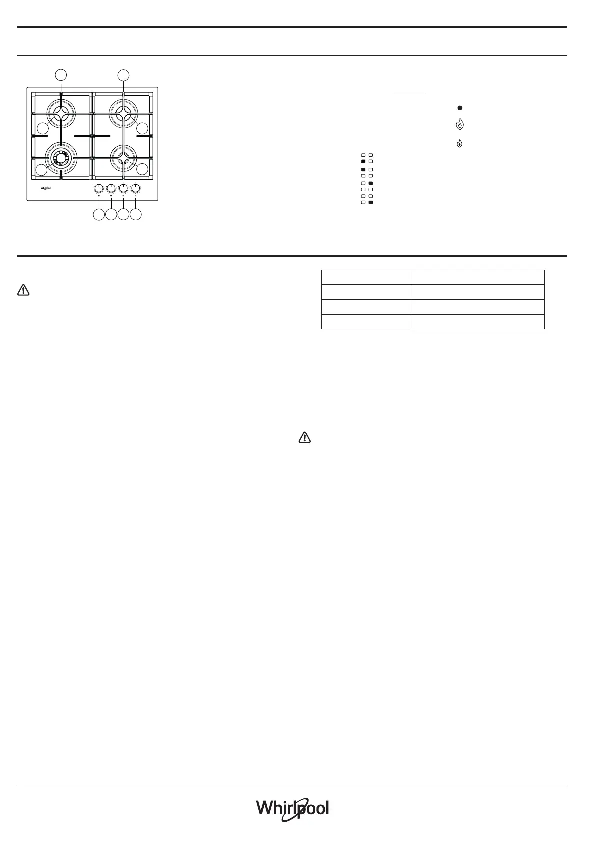 Cette table de cuisson est équipée de brûleurs de diérents diamètres.