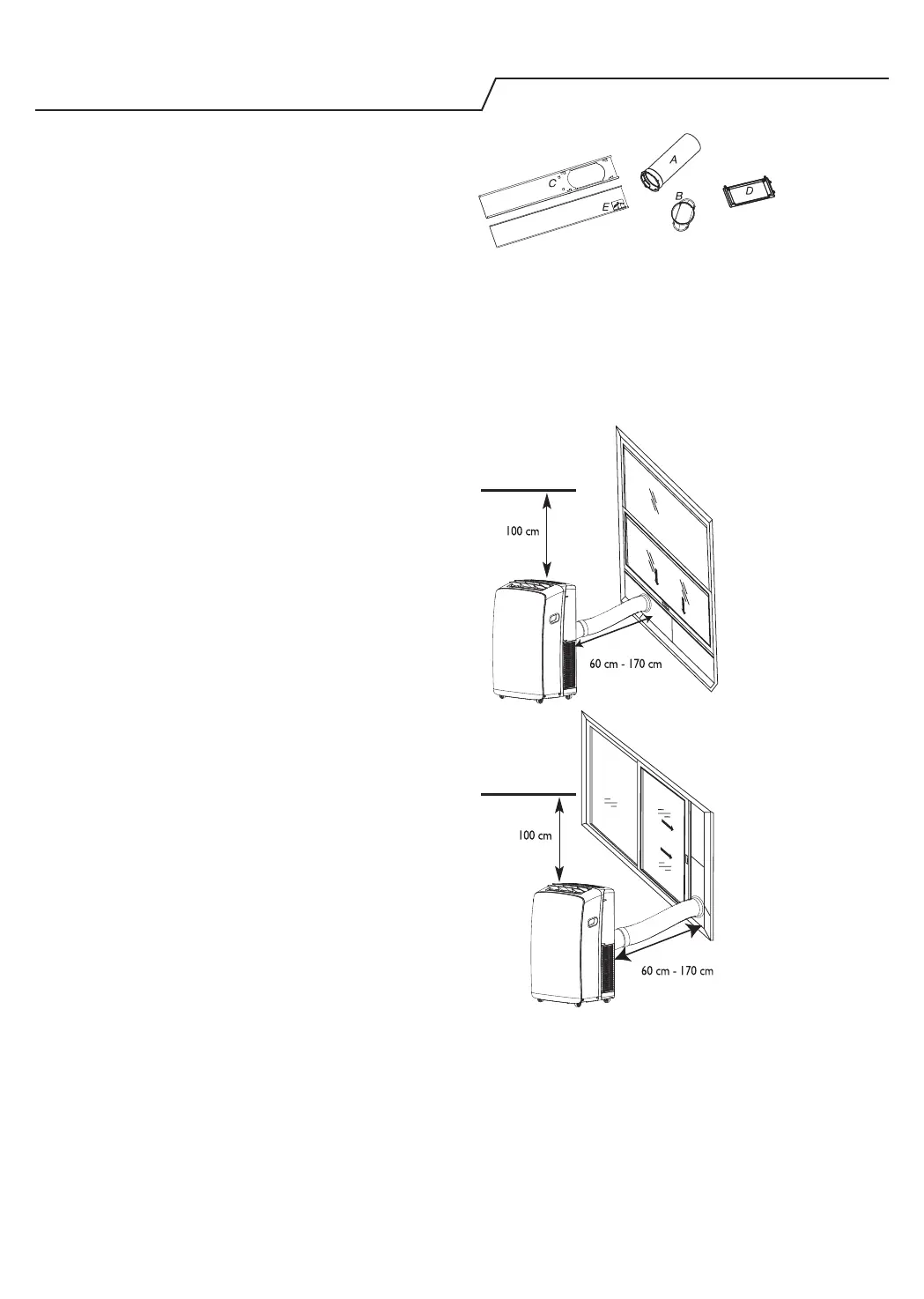 • Door de exibele uitlaatslang kan de airconditioner