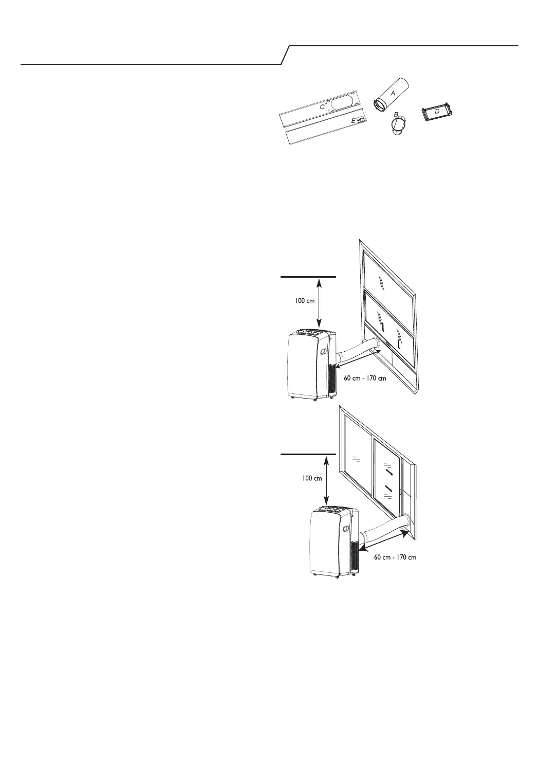 entre 60 e 170 cm (23 1/2" e 67") da janela ou porta.