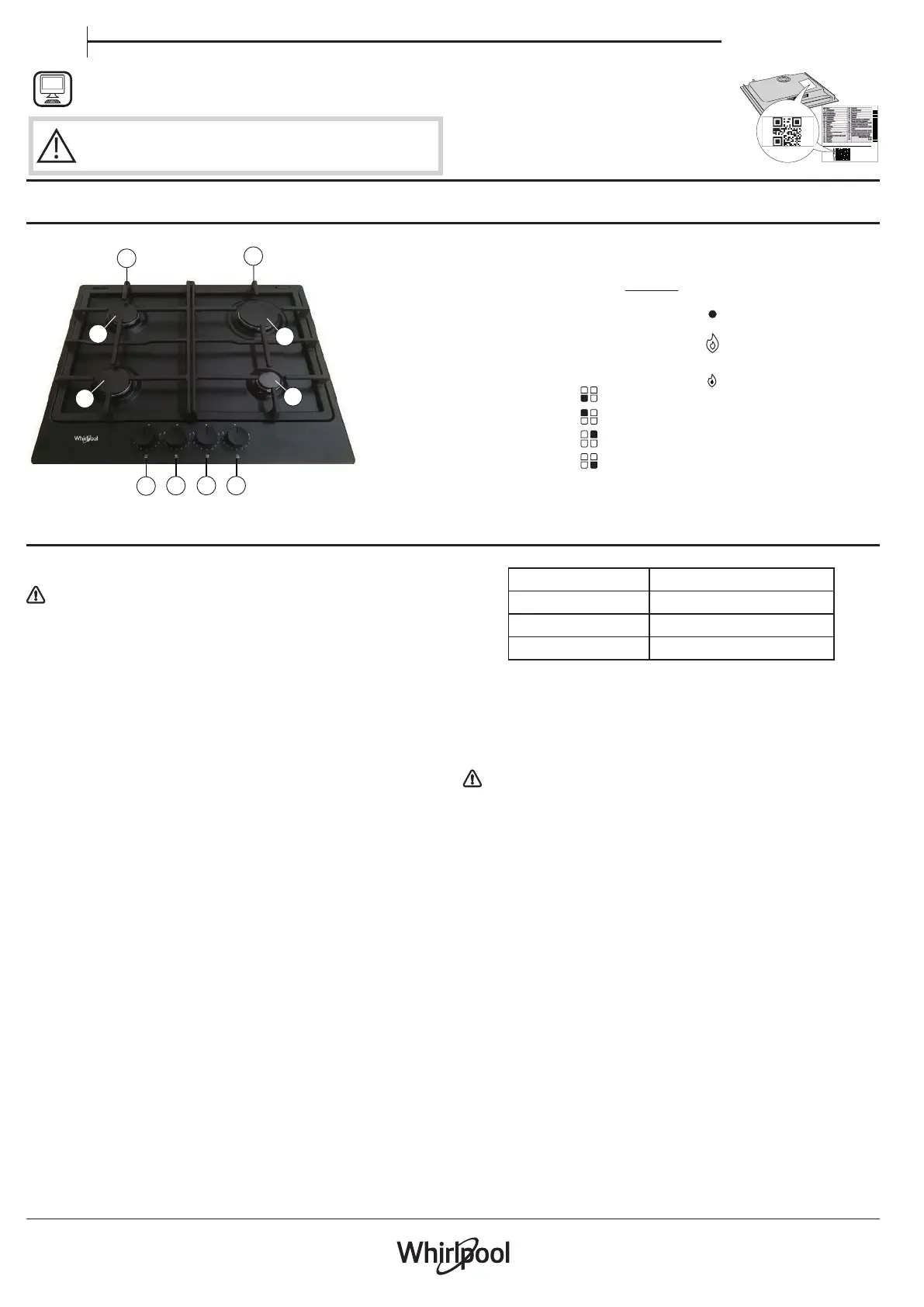 IMPORTANT: when the hob is in use, the entire hob area may become hot.
