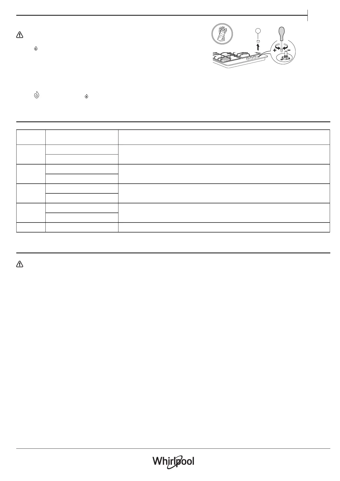 The adjustment must be performed with the tap in a minimum gas setting