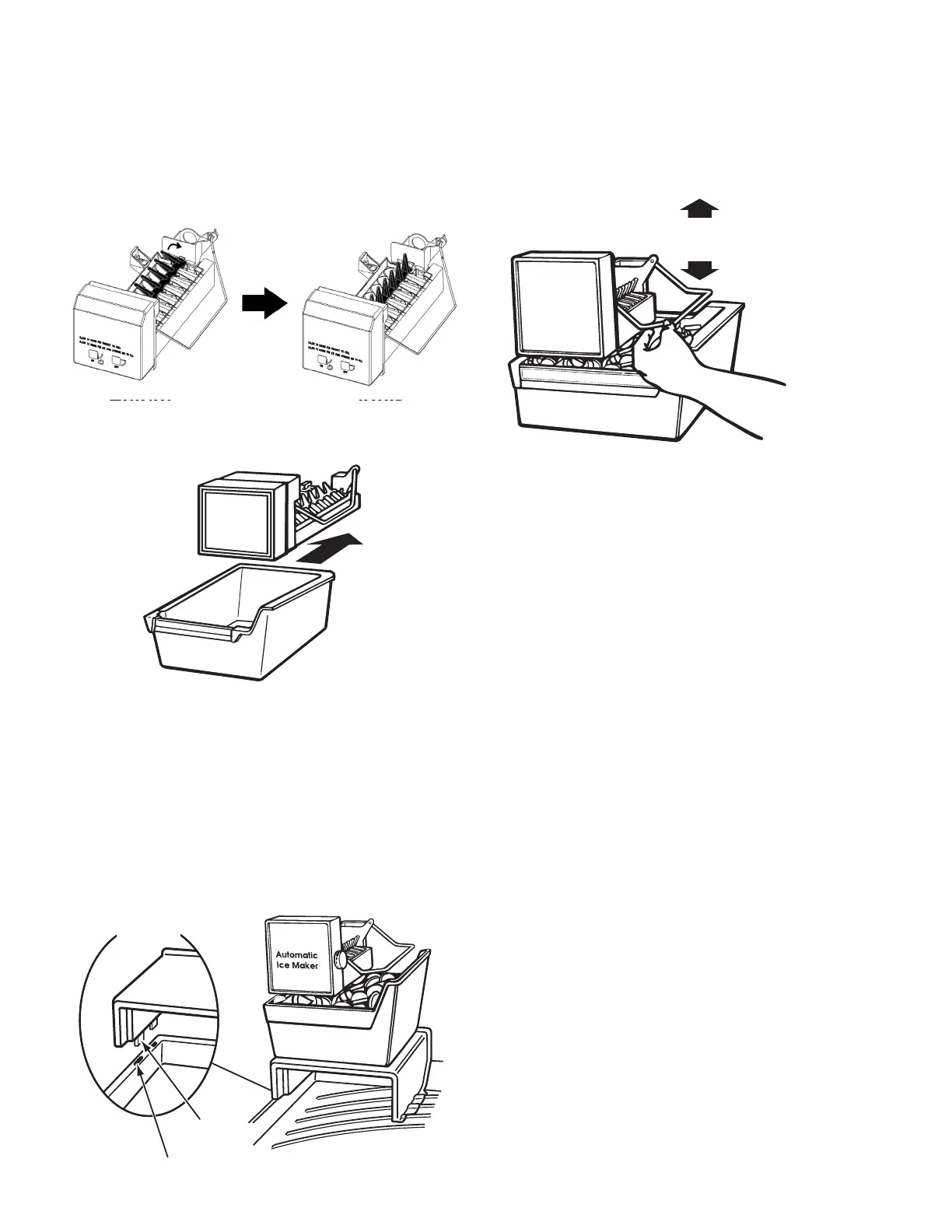 4. Baje el brazo en la fábrica de hielo (vea la ilustración) a su posición