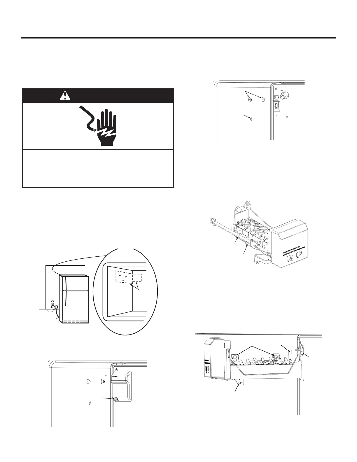 10. Hang the ice maker from the tabs on the shoulder screws.