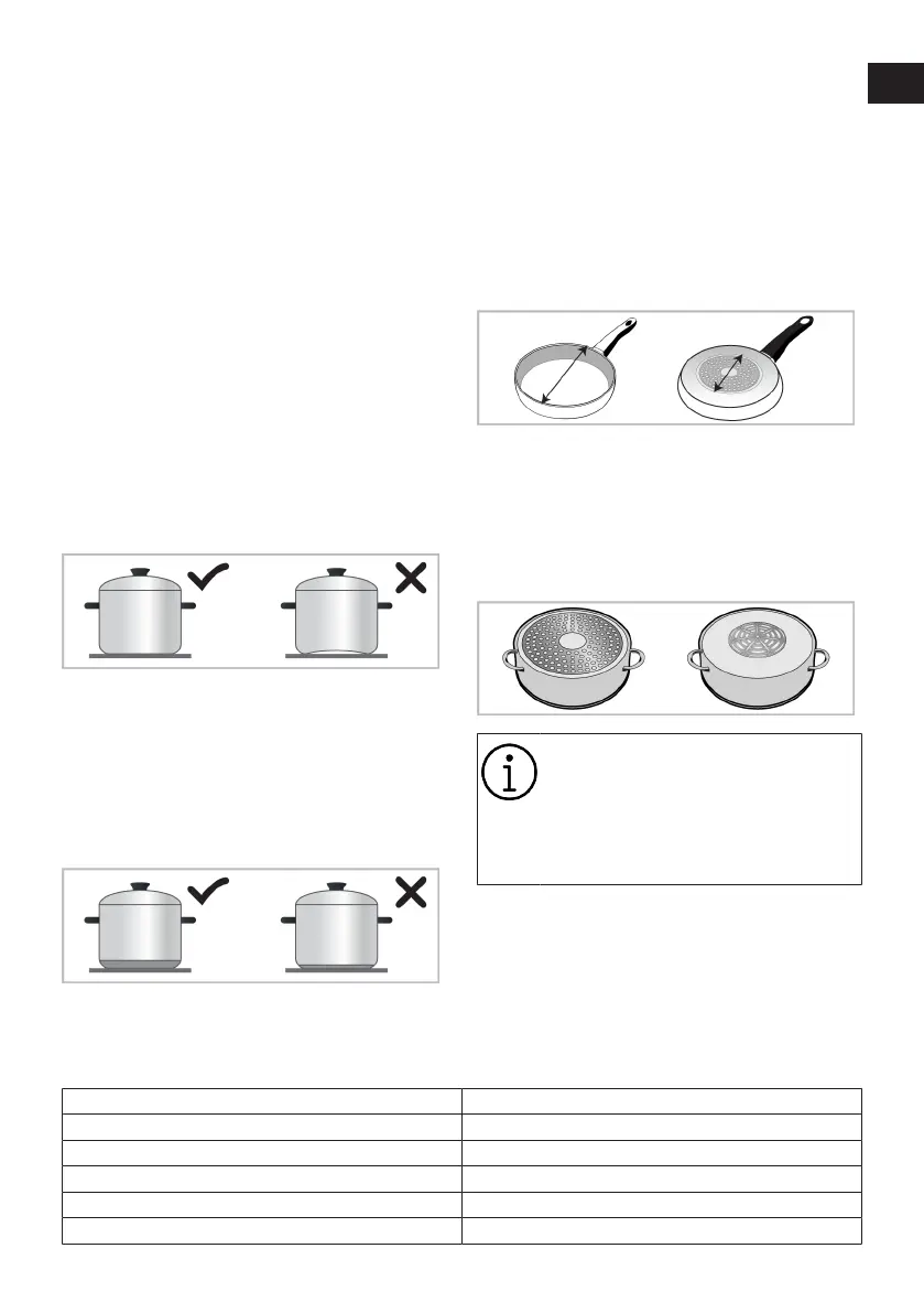 Cooking zone diameter - mm Pot diameter - mm