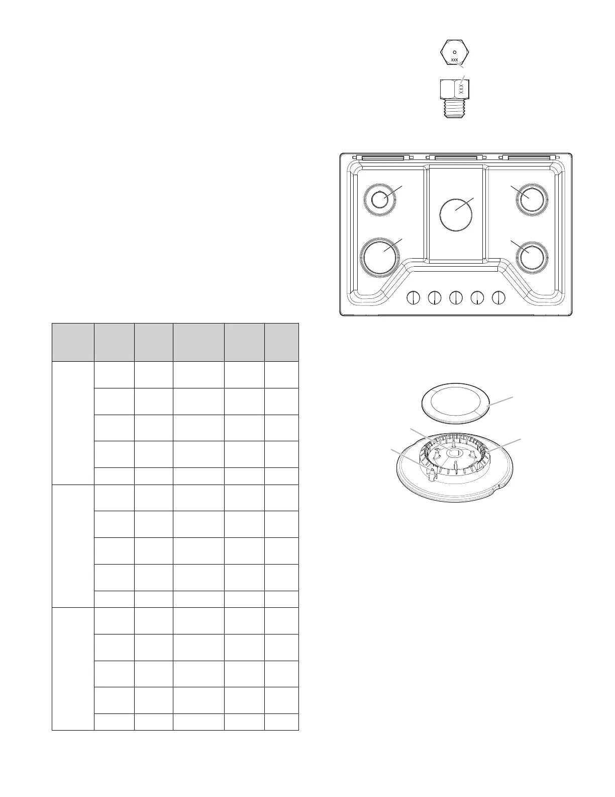 Use the following chart to match the correct gas orifice spud