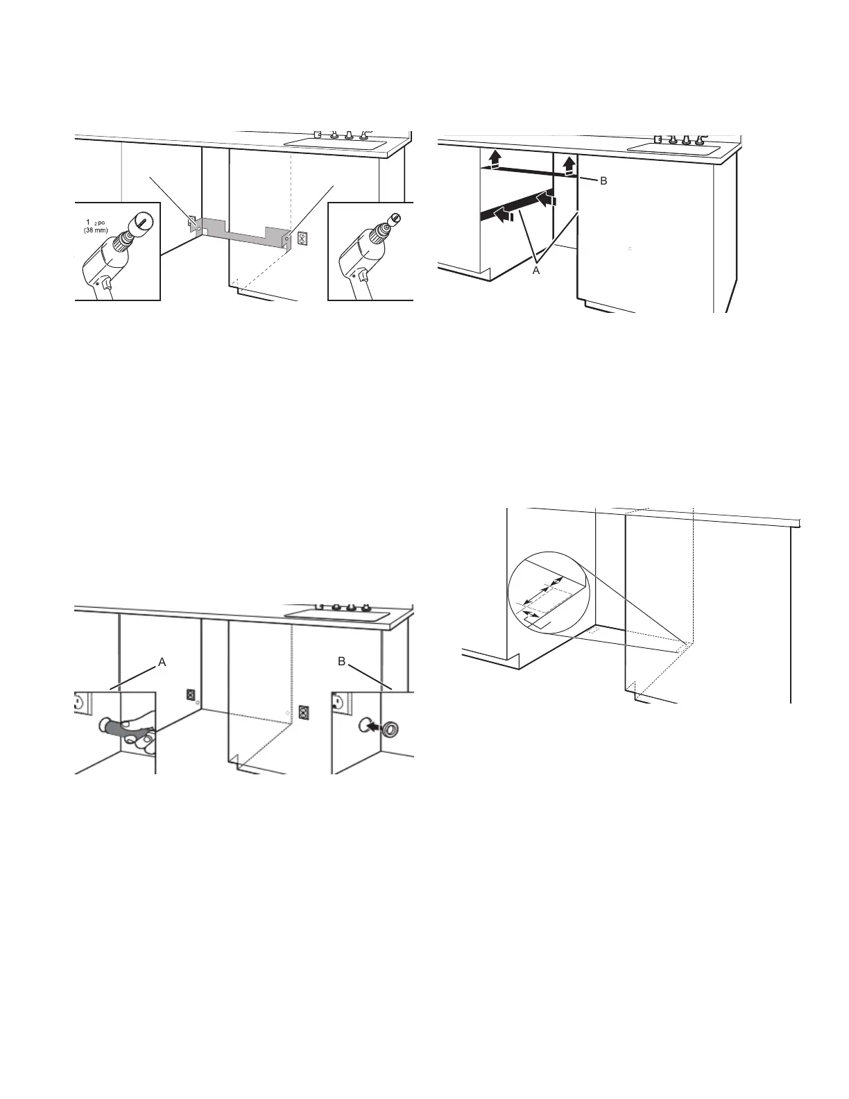 l’espacement entre les côtés de l’armoire et du lave-vaisselle sont
